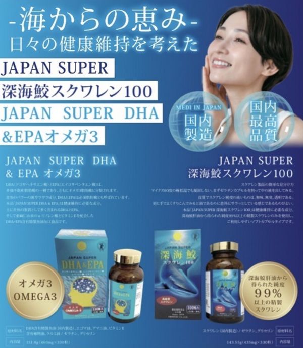 JAPAN SUPER Deep Sea Shark Squalene 100 具有從鯊魚肝中提取的鯊魚提取物的主要成分角鯊烯(高級不飽和烴)和不飽和脂肪酸等各種成分的綜合作用。我們對它的經驗感到滿意,並被它所利用。