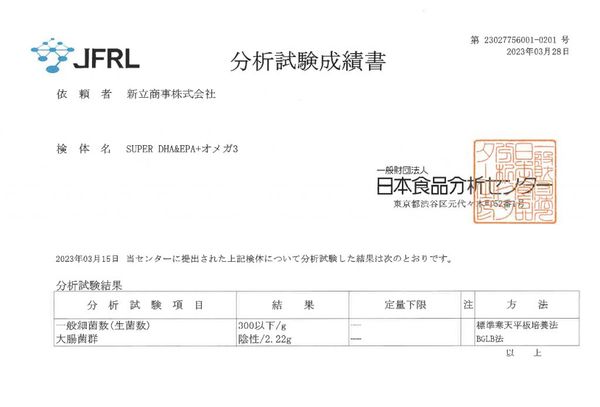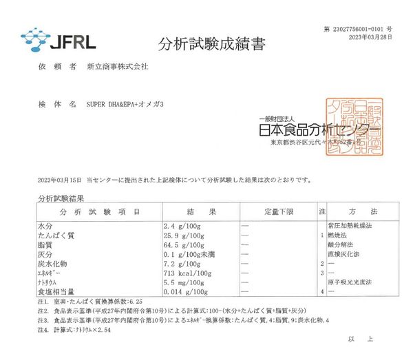試驗檢查成績書發行號碼:第23027756001-0101號